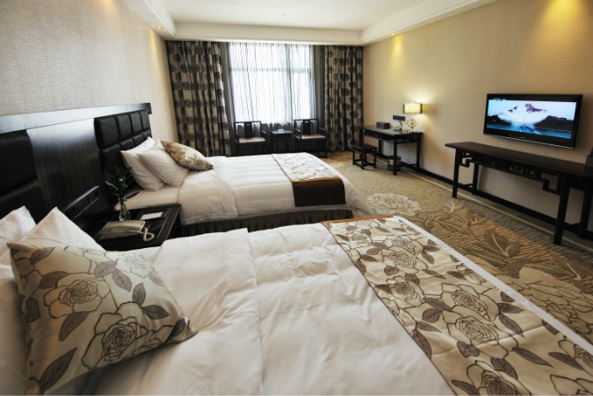 房內設施齊全,使用中央空調,37寸3D液晶電視,客房免費提供不計時國內長途電話,免費光纖網(wǎng)絡接入,紅木家具,保險箱、冰箱。酒店餐廳設有豪華餐飲包房11間。